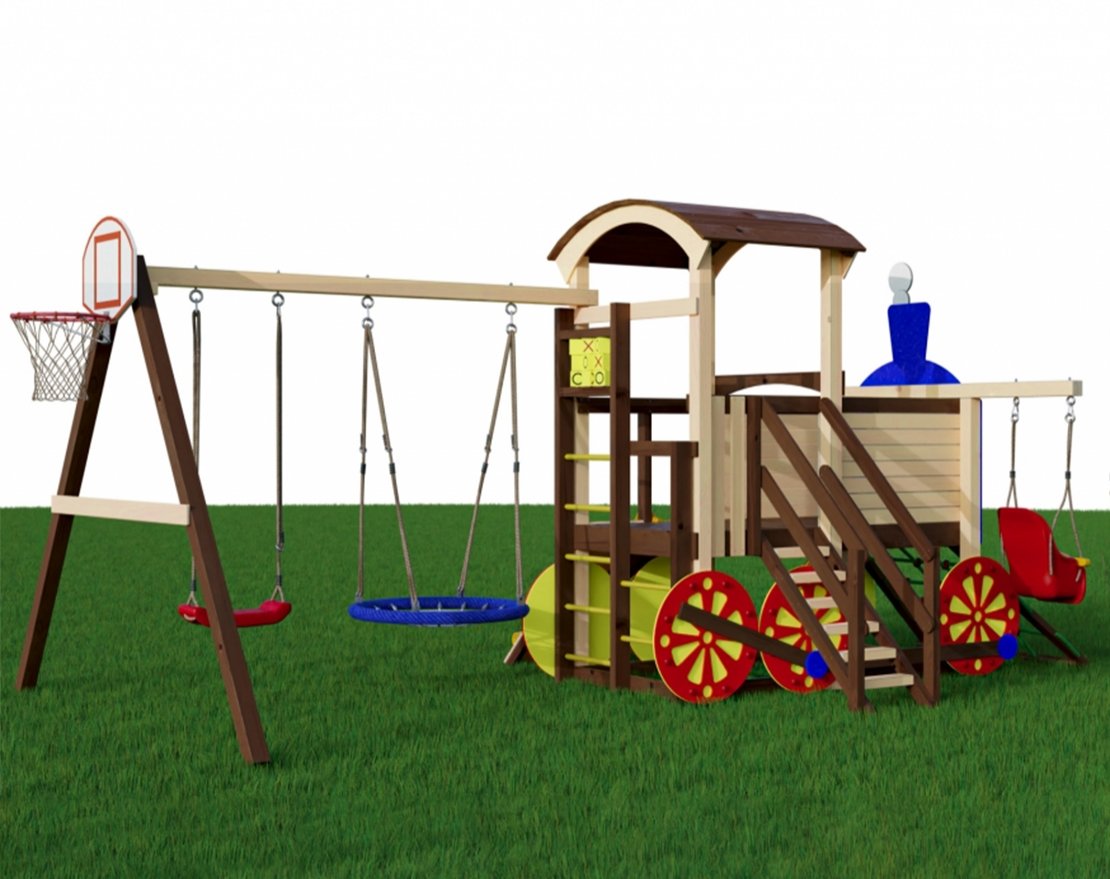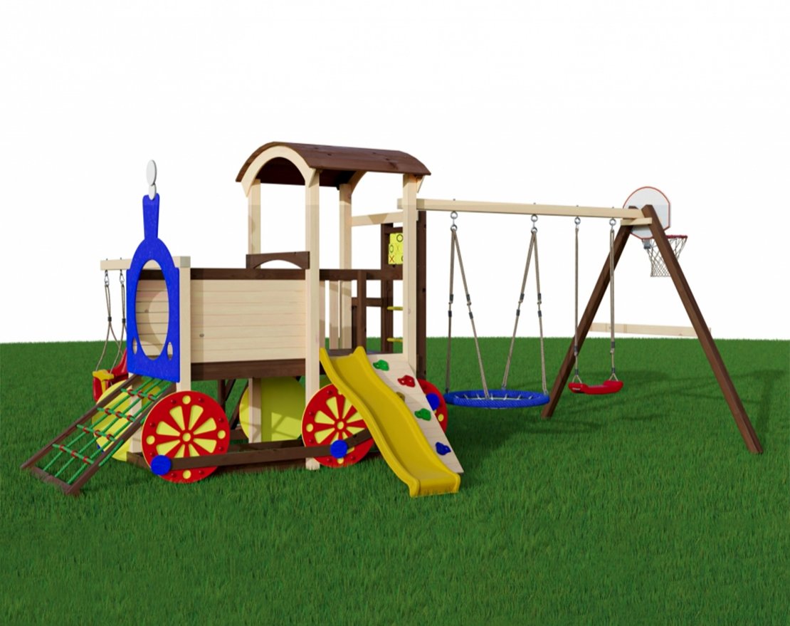 Площадка Рейлроуд 2 рассчитана на 5-6 одновременно играющих детей в возрасте от 3 до 14 лет. Конструкция игрового комплекса устойчива, изготовлена из экологически чистых материалов, все соединительные элементы травмобезопасны. Детская площадка оснащена горкой, подвесным сеткой, двумя видами качелей, скалодромом-сеткой и модулем с кубиками. Яркий привлекательный дизайн игрового комплекса не оставит равнодушным малышей и подарит массу положительных эмоций от игр и спортивной активности.