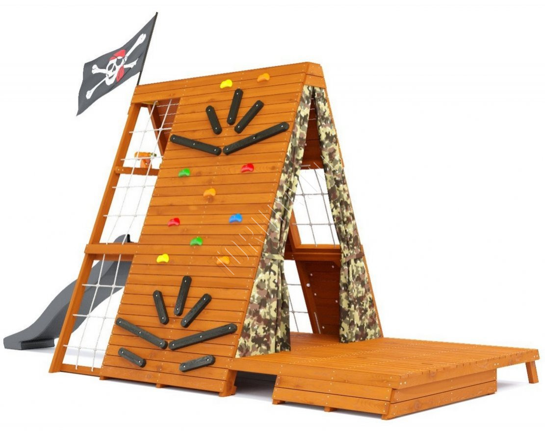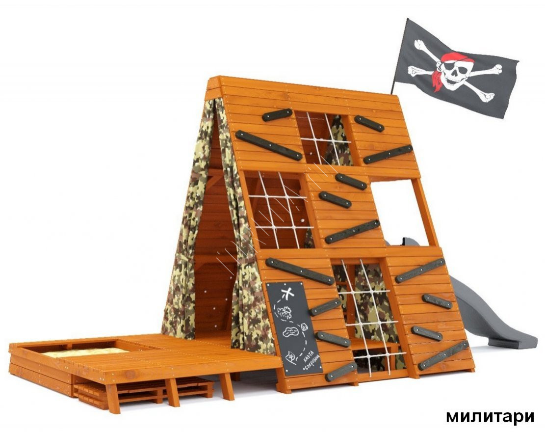 Спортивный домик - идеальное решение для дачников и любителей активного отдыха на природе. Это удивительная детская площадка, которая сочетает в себе развивающие и развлекательные функции. Она представляет собой конструктив в виде домика с игровым пространством внутри, где можно играть в любимые игры, такие как "казаки-разбойники".