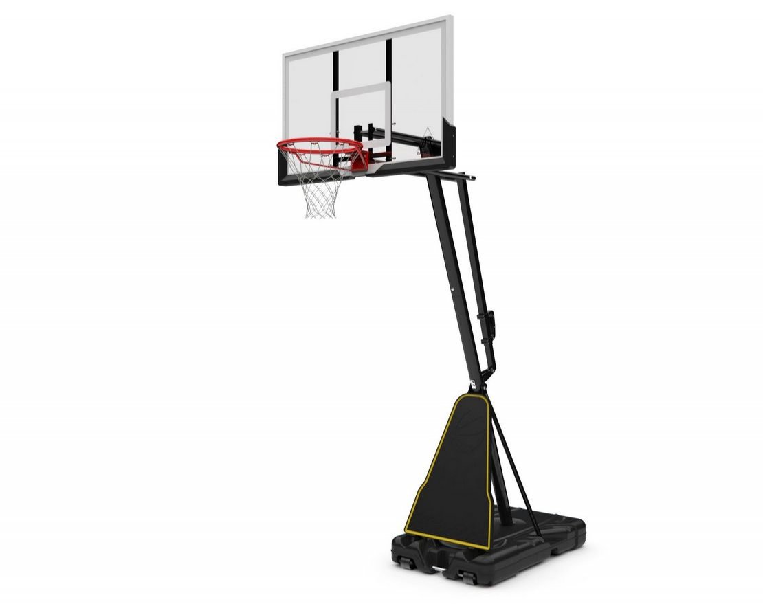 Портативная баскетбольная стойка совмещает в себе мобильность и обеспечивает отскок мяча, как на профессиональной площадке. Благодаря усиленной конструкции удалось добиться увеличенного вылета щита, при сохранении компактности размещения. Он регулируется по высоте в диапазоне от 230 до 305 см, имеет защитное покрытие Poly Pade в нижней части. В основание стойки (объем 114,7 л) необходимо залить воду или засыпать песок в качестве утяжелителя.