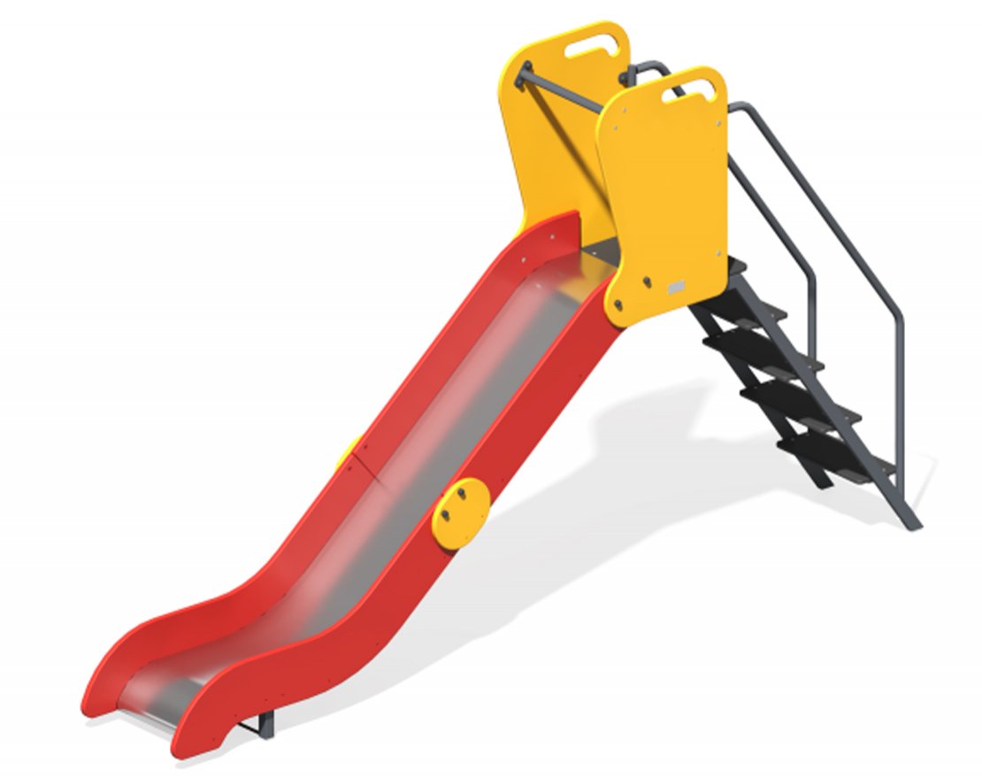 Горка представляет собой сборно-разборную конструкцию, состоящую из одной площадки, одного лестничного марша с перилами, одного ската горки с высотой стартового участка 1250 мм, крепёжного турника, двух стоек, двух ограждений стартовой площадки и распорного турника-ограничителя Оборудование устанавливается и бетонируется в грунт.