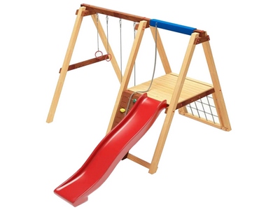 Игровой комплекс Савушка 1 при своих небольших размерах обладает довольно широким функционалом (который по желанию можно легко расширить). Надо заметить, что качественное отличие данного комплекса заключается в широкой платформе в 1 метр, что позволило дополнить комплекс еще одним спортивным снарядом. В данном случае это сетка-лазалка. А на качелях могут кататься даже родители! Детский городок "Савушка 1" предназначен для дачи, коттеджа.