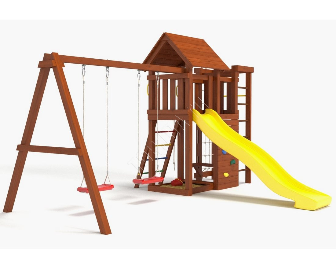 Это универсальное решение для активного досуга и позитивного настроения непосед с трех лет. Комплекс безопасен – конструкция, качество древесины и подвижных элементов соответствуют ГОСТ. Основным материалом является экологичный клееный брус, балки которого отшлифованы и имеют закругленные края.